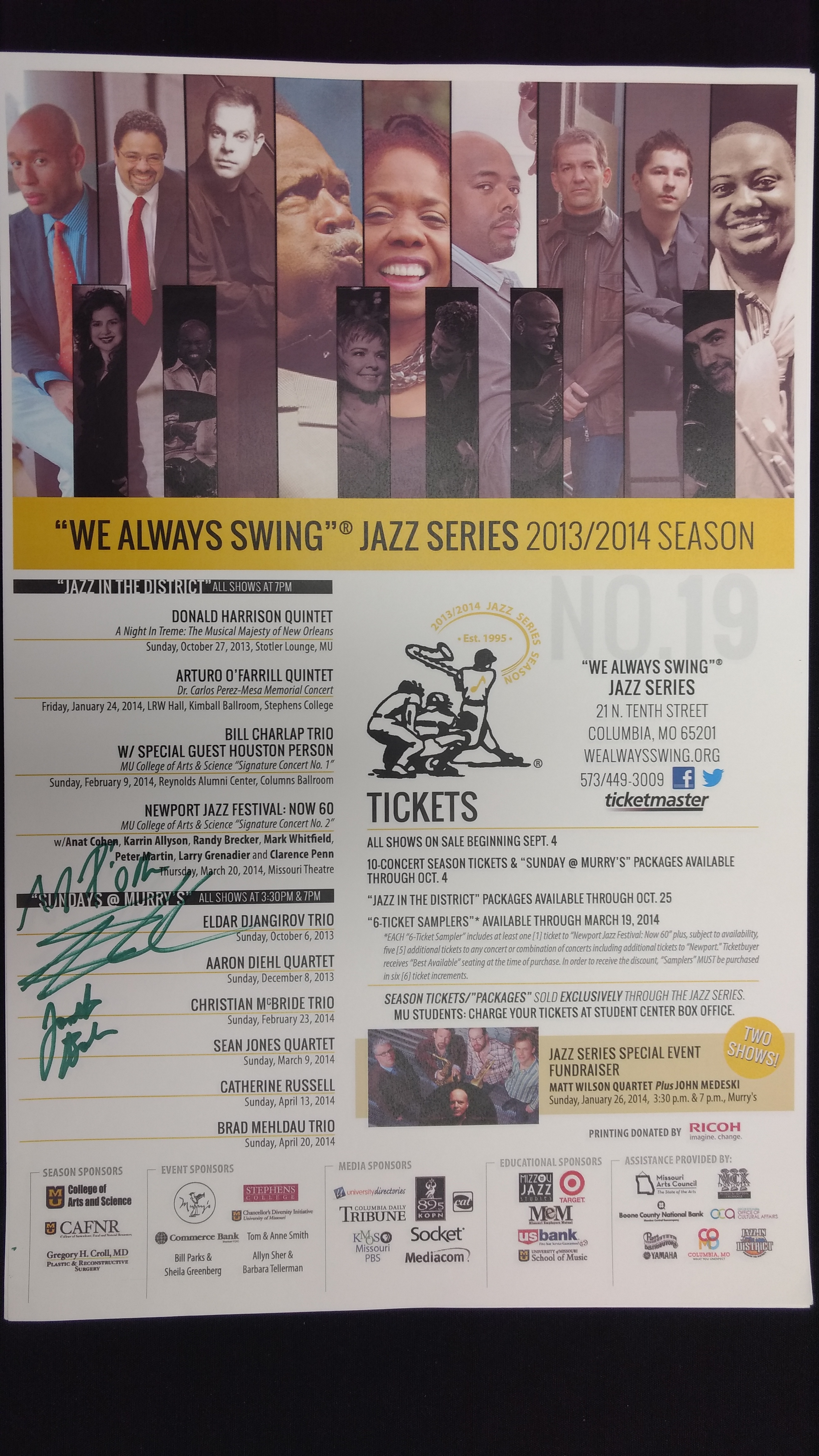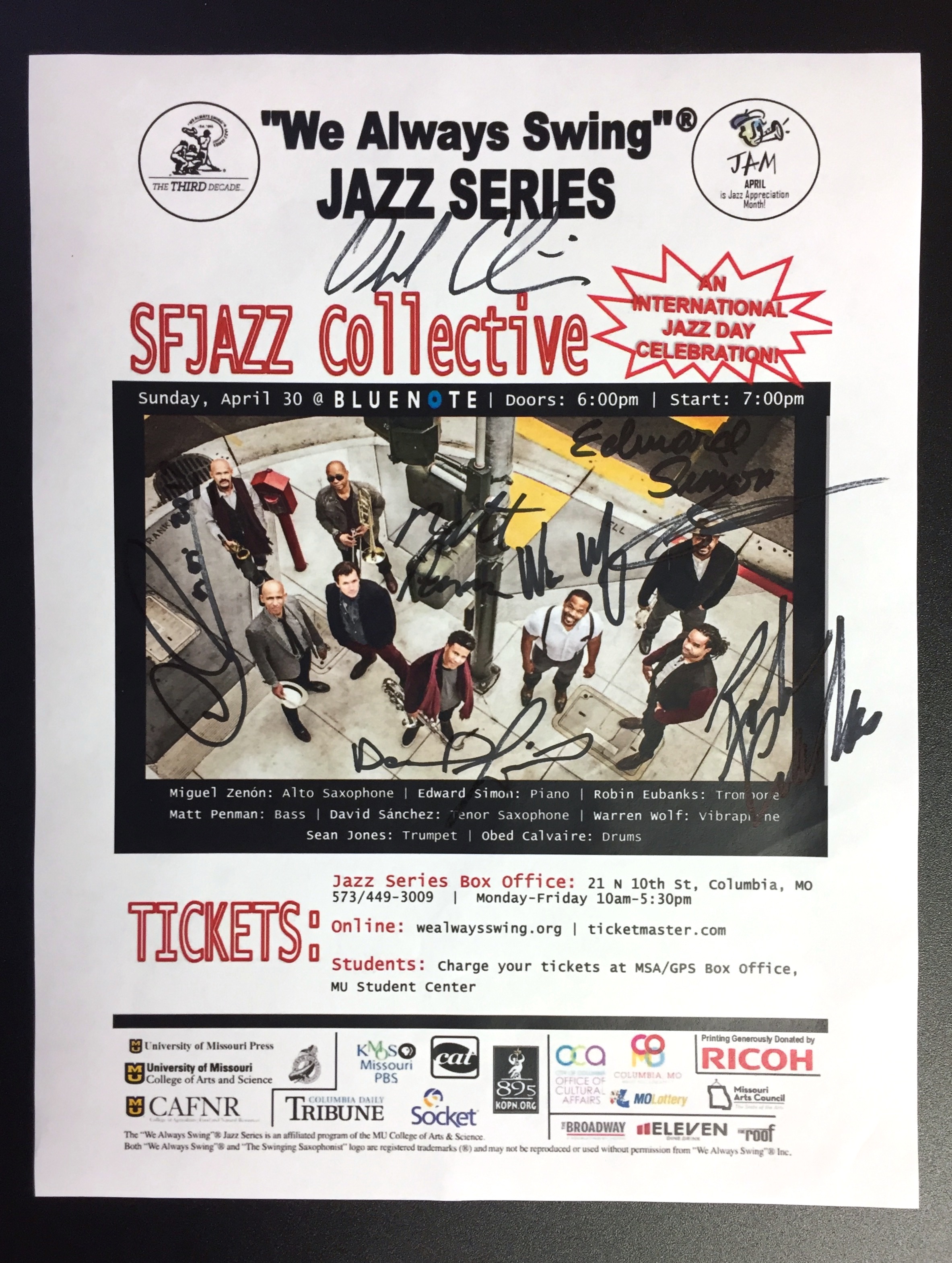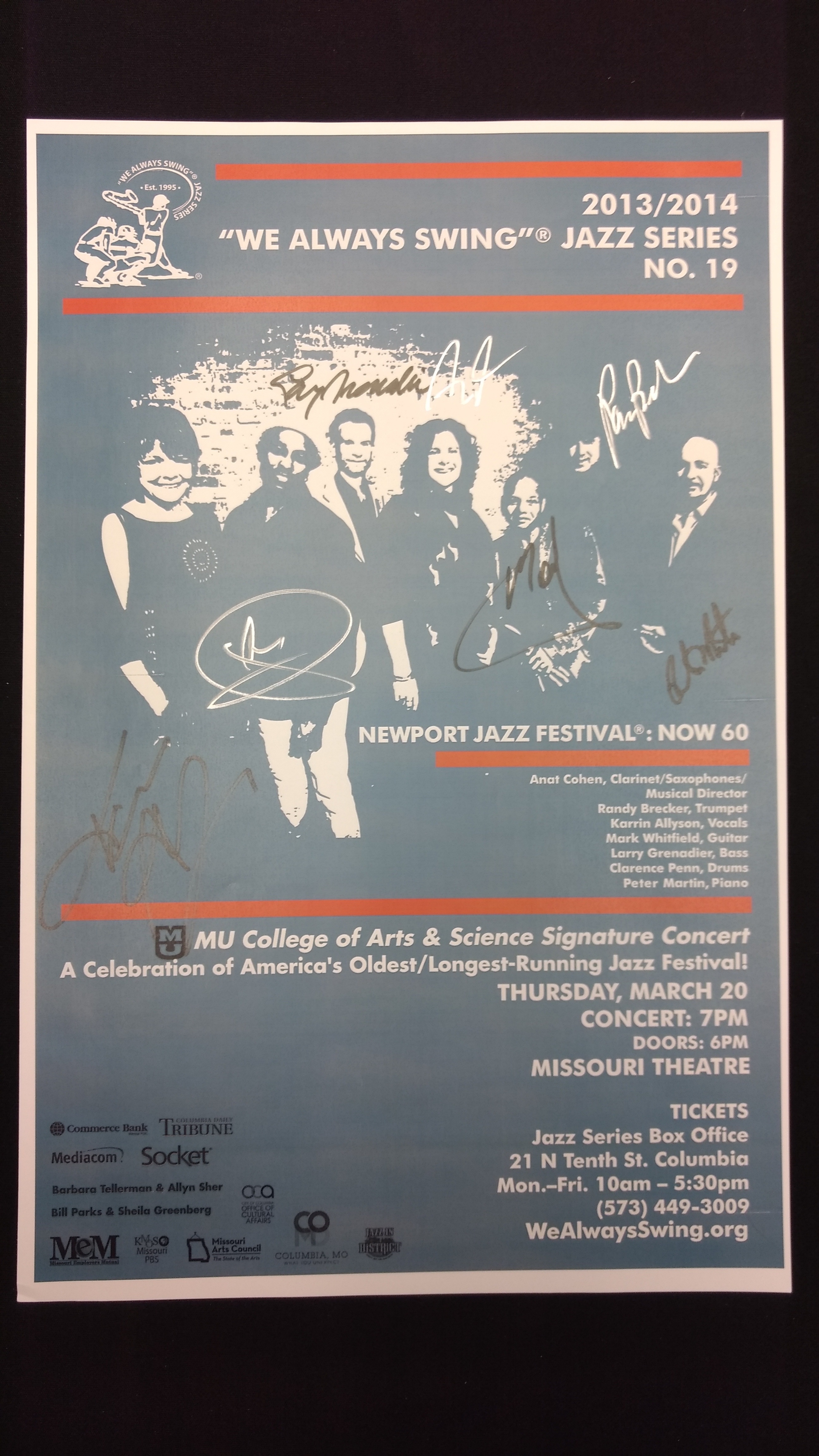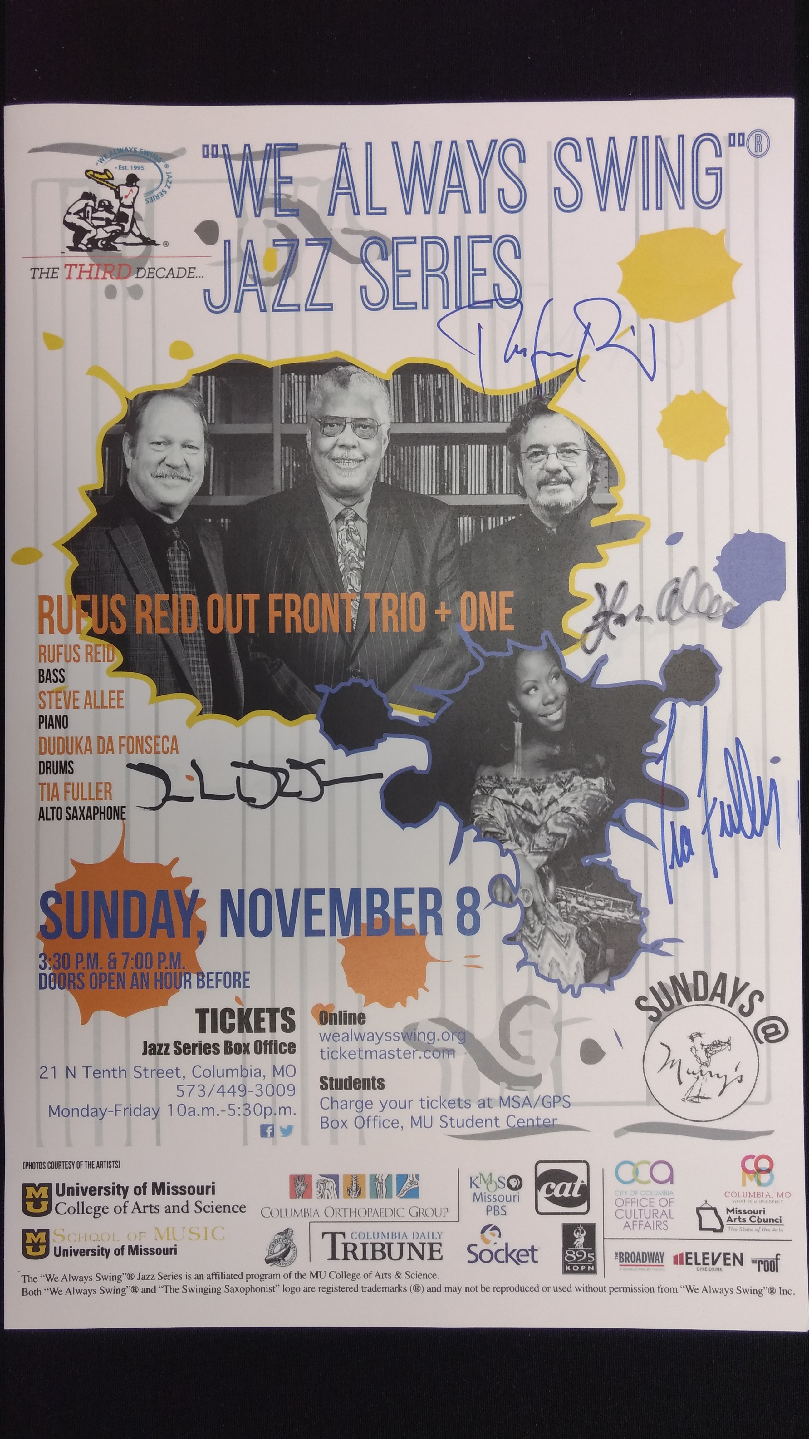 The "We Always Swing”® Jazz Series is a 501(c)(3) not-for-profit corporation administered by “We Always Swing,” Inc. The Jazz Series is supported by: concert revenue; federal, state and local grants and contracts; corporate sponsorships; underwriting and advertising-derived income; and by the generosity of individuals who make tax-deductible contributions. “We Always Swing”® and “The Swinging Saxophonist”™ logo are registered trademarks of “We Always Swing,”® Inc./National Pastimes Productions™ and may not be reproduced in print or digital format without prior consent.