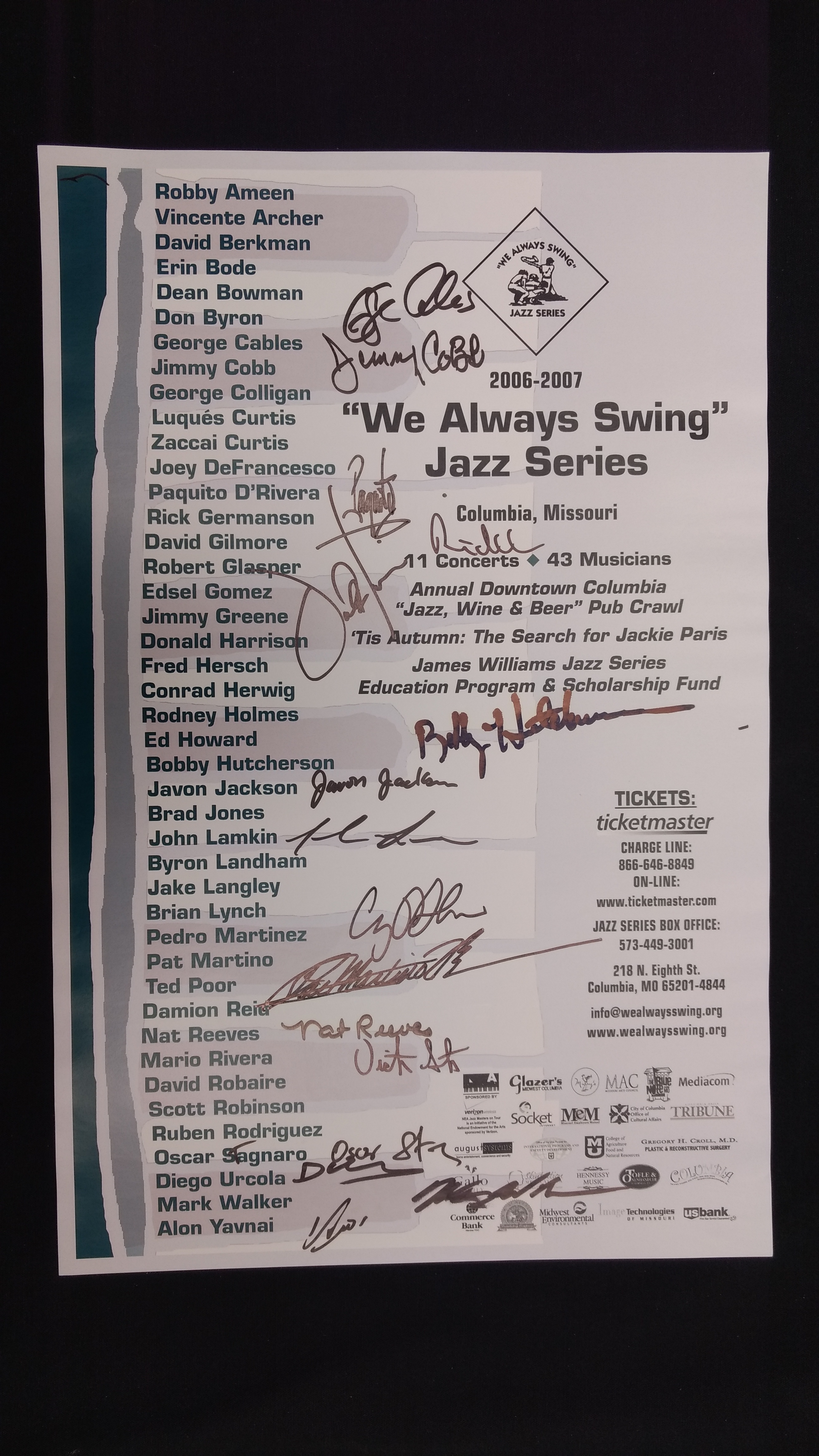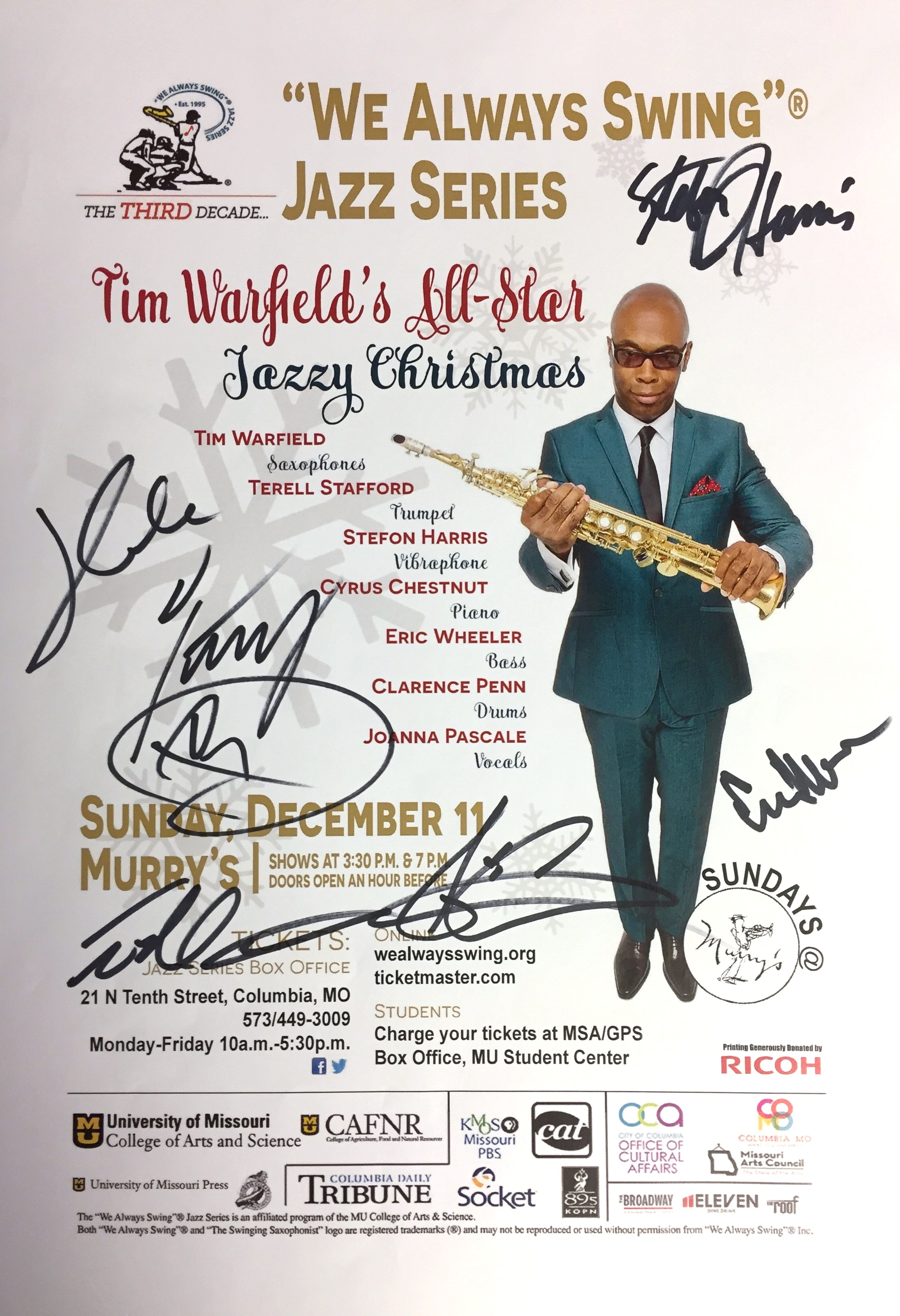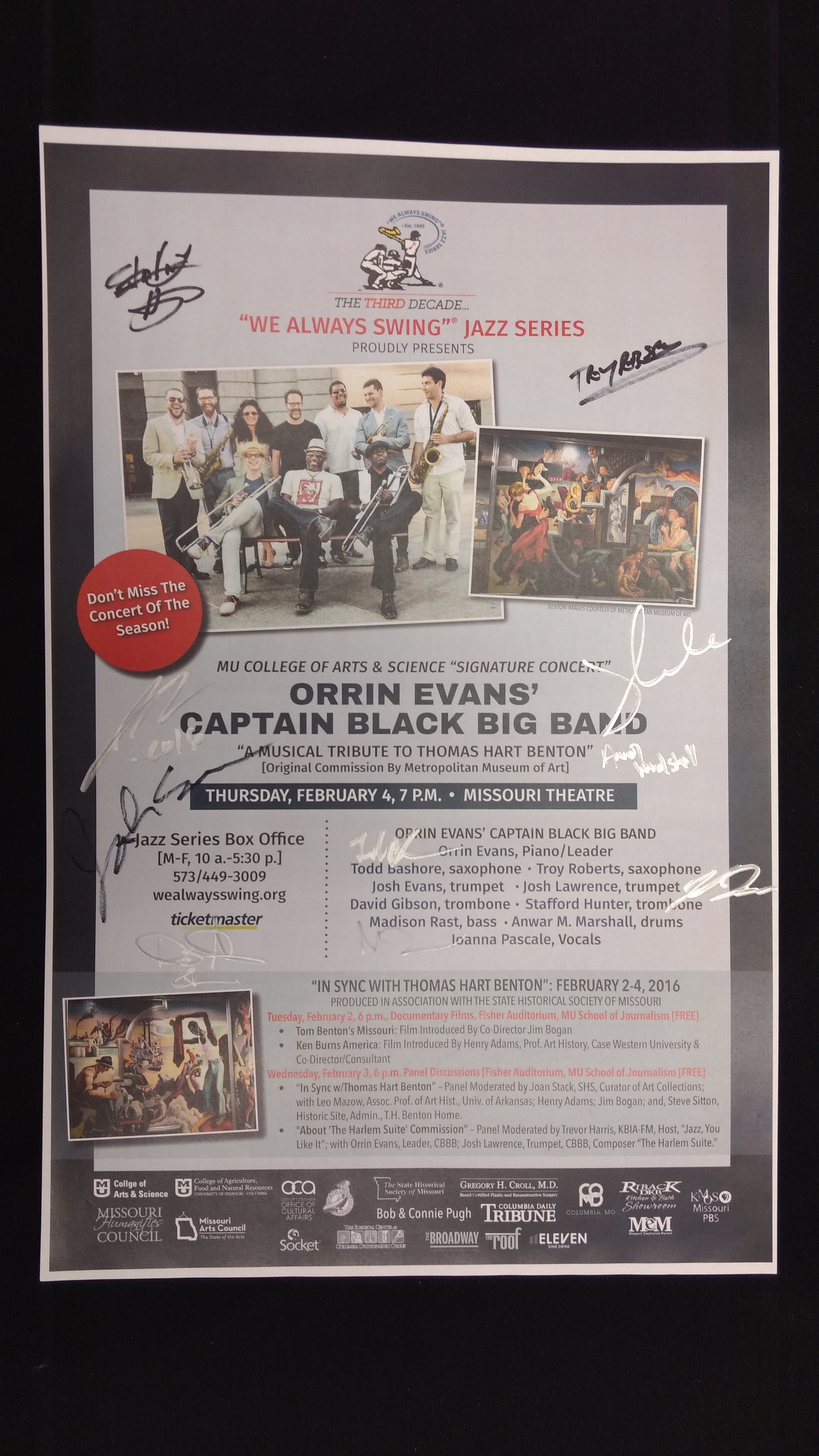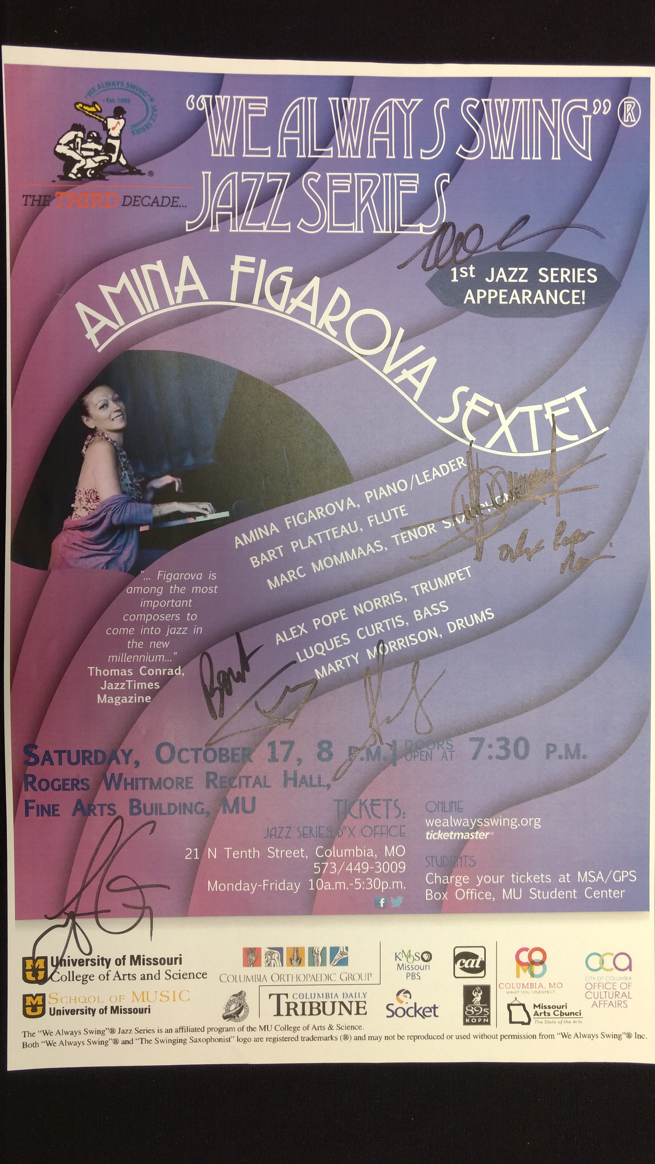 The "We Always Swing”® Jazz Series is a 501(c)(3) not-for-profit corporation administered by “We Always Swing,” Inc. The Jazz Series is supported by: concert revenue; federal, state and local grants and contracts; corporate sponsorships; underwriting and advertising-derived income; and by the generosity of individuals who make tax-deductible contributions. “We Always Swing”® and “The Swinging Saxophonist”™ logo are registered trademarks of “We Always Swing,”® Inc./National Pastimes Productions™ and may not be reproduced in print or digital format without prior consent.