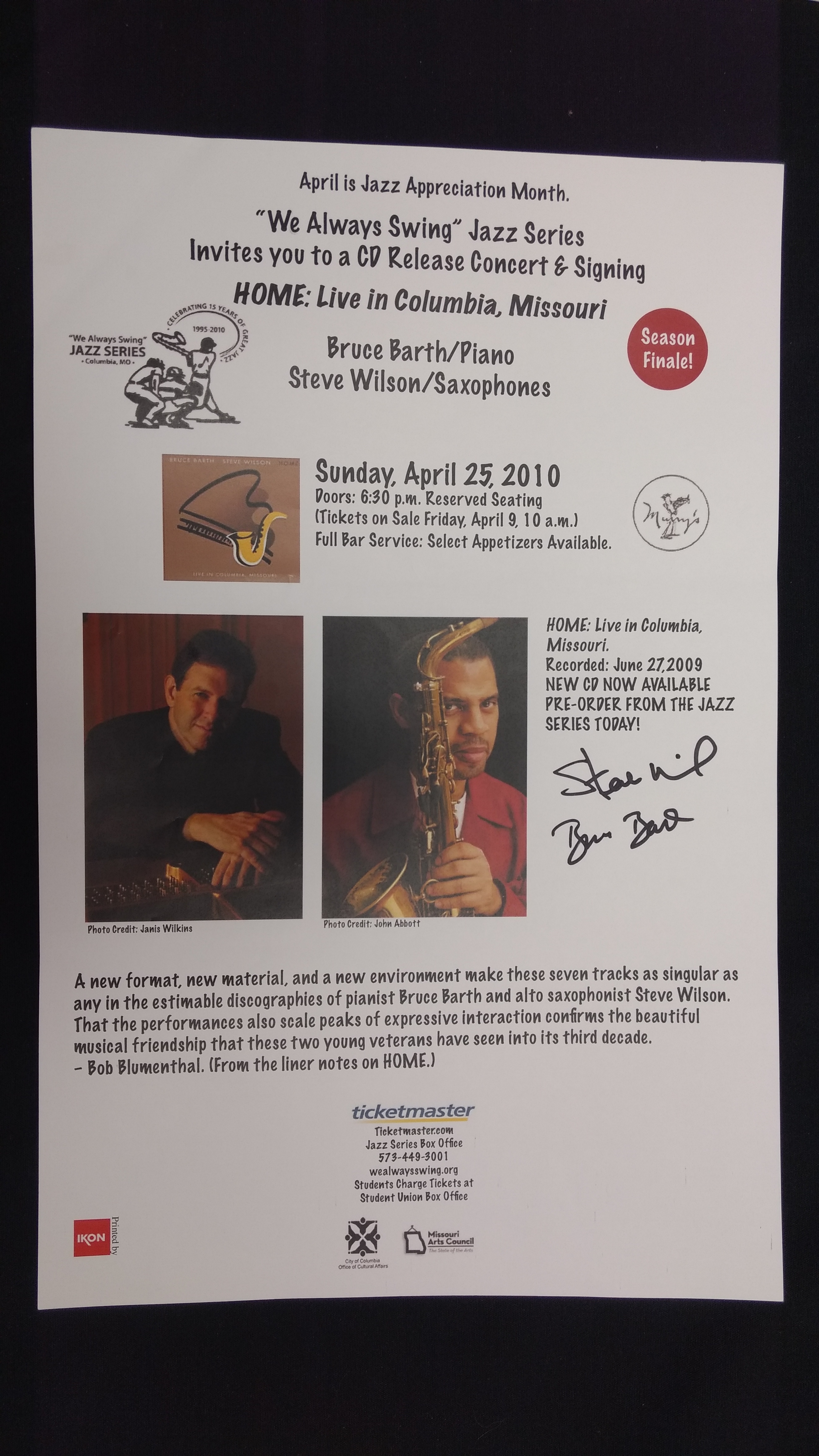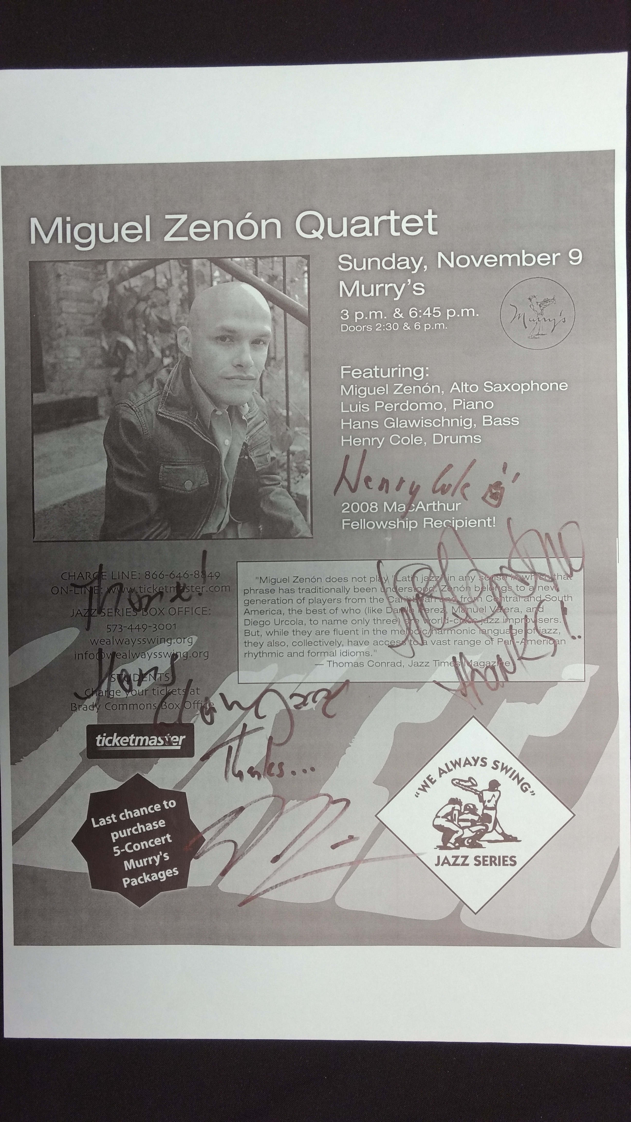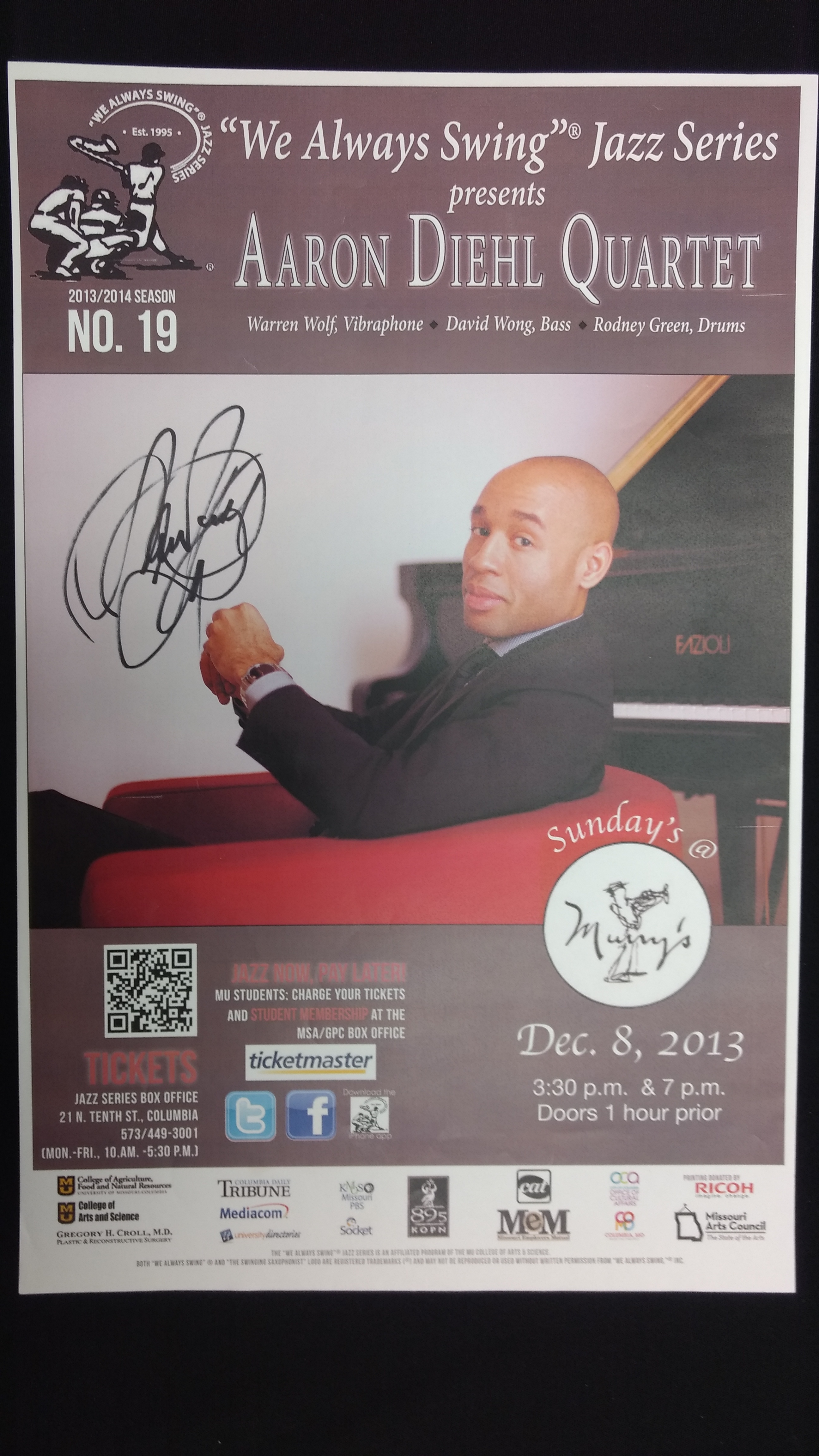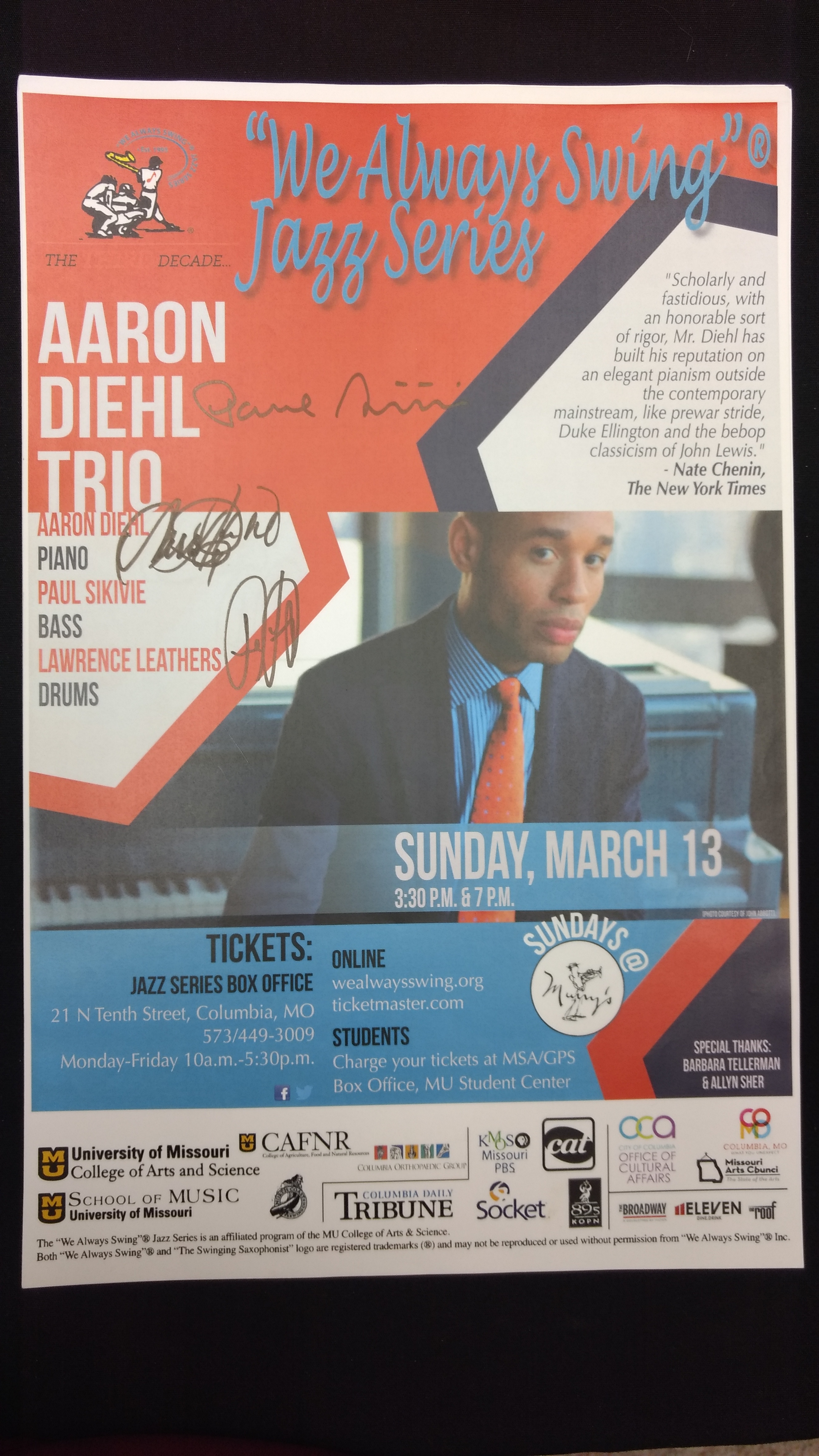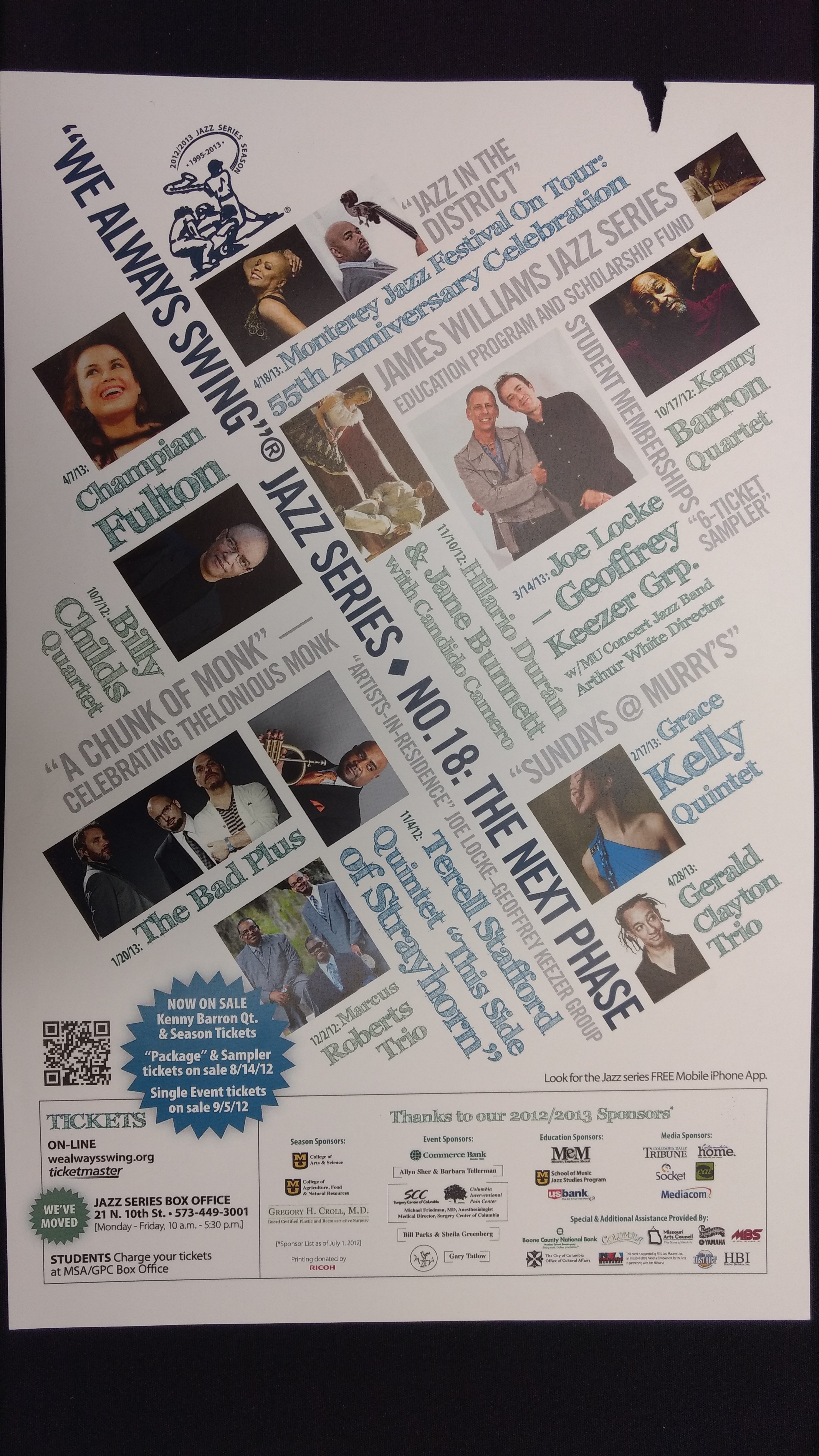 The "We Always Swing”® Jazz Series is a 501(c)(3) not-for-profit corporation administered by “We Always Swing,” Inc. The Jazz Series is supported by: concert revenue; federal, state and local grants and contracts; corporate sponsorships; underwriting and advertising-derived income; and by the generosity of individuals who make tax-deductible contributions. “We Always Swing”® and “The Swinging Saxophonist”™ logo are registered trademarks of “We Always Swing,”® Inc./National Pastimes Productions™ and may not be reproduced in print or digital format without prior consent.