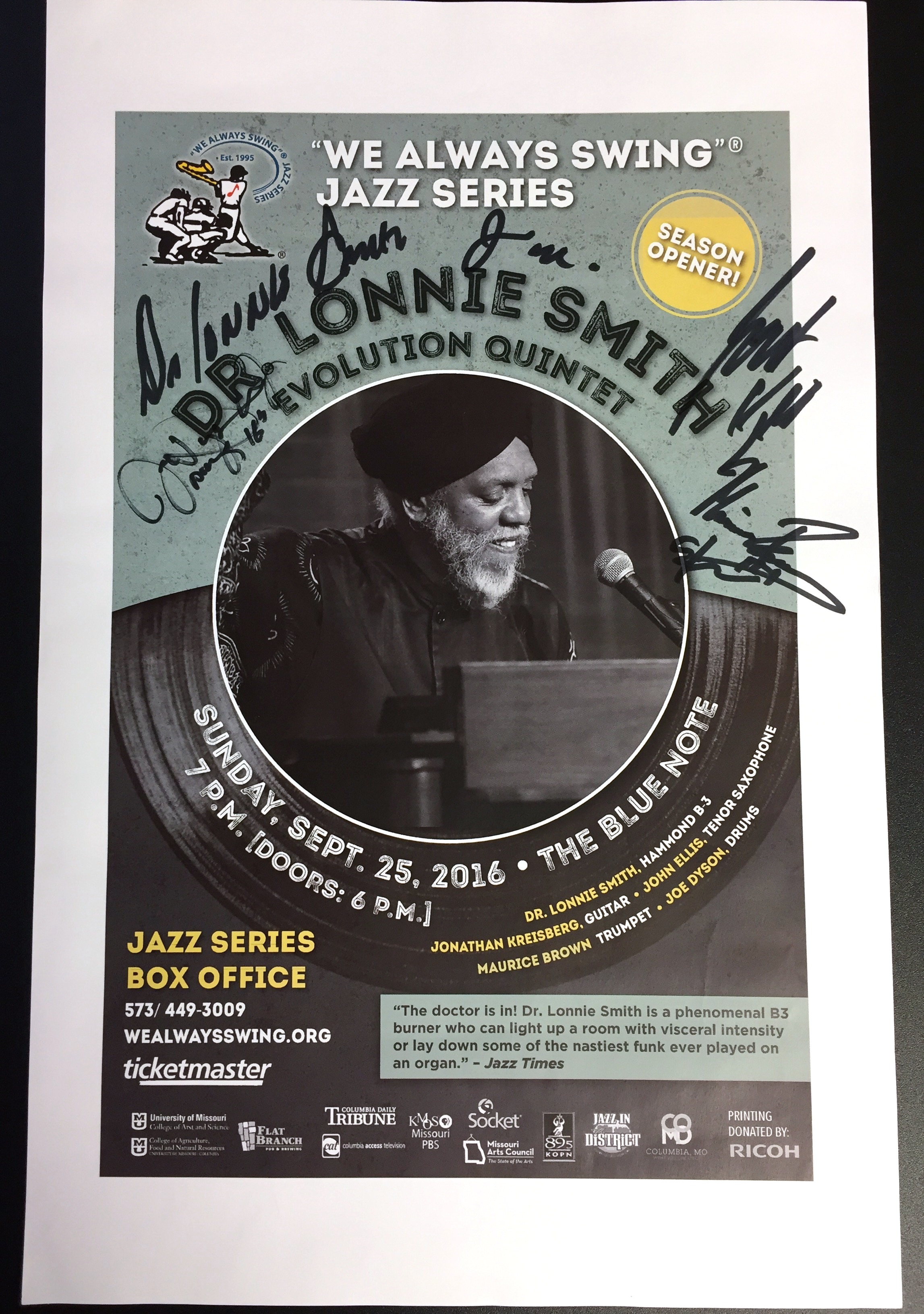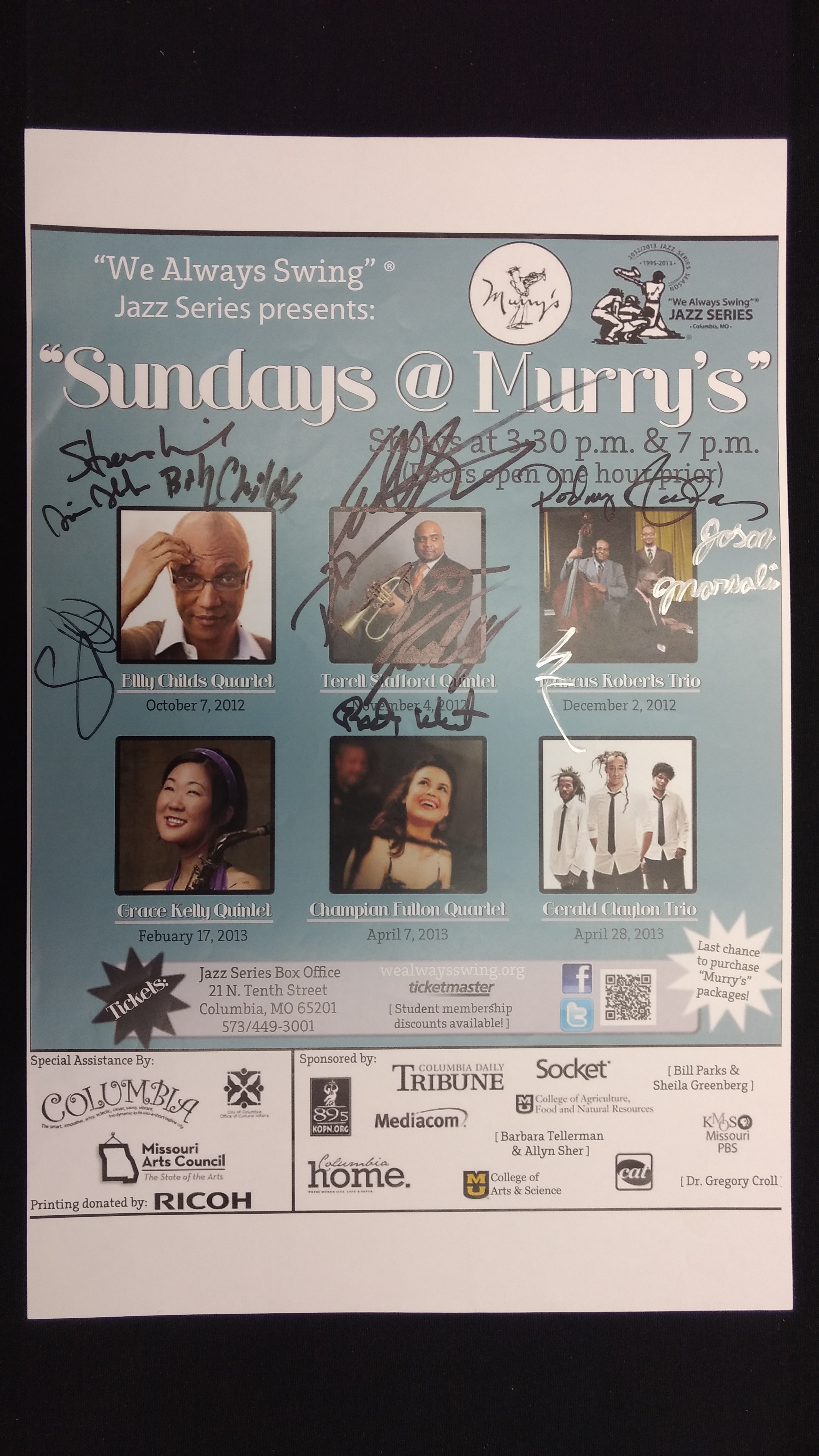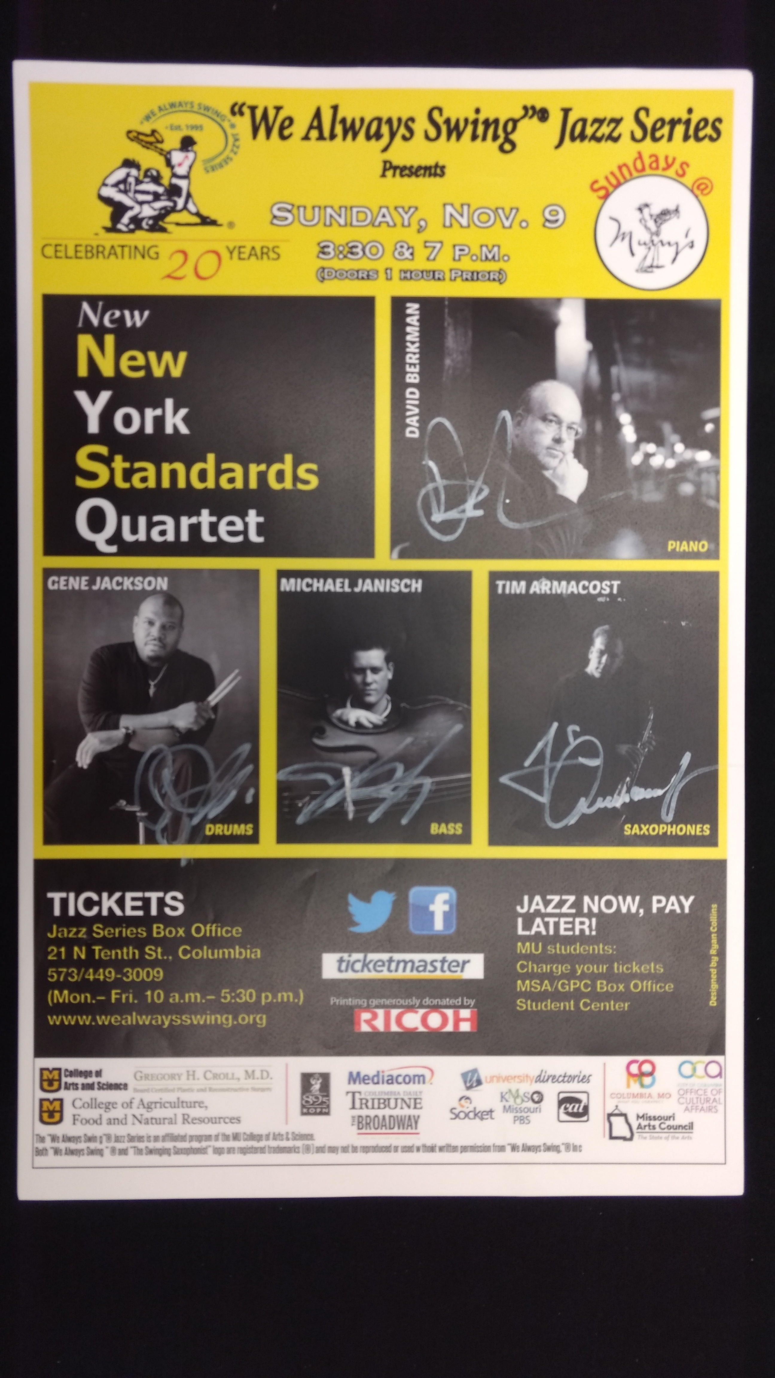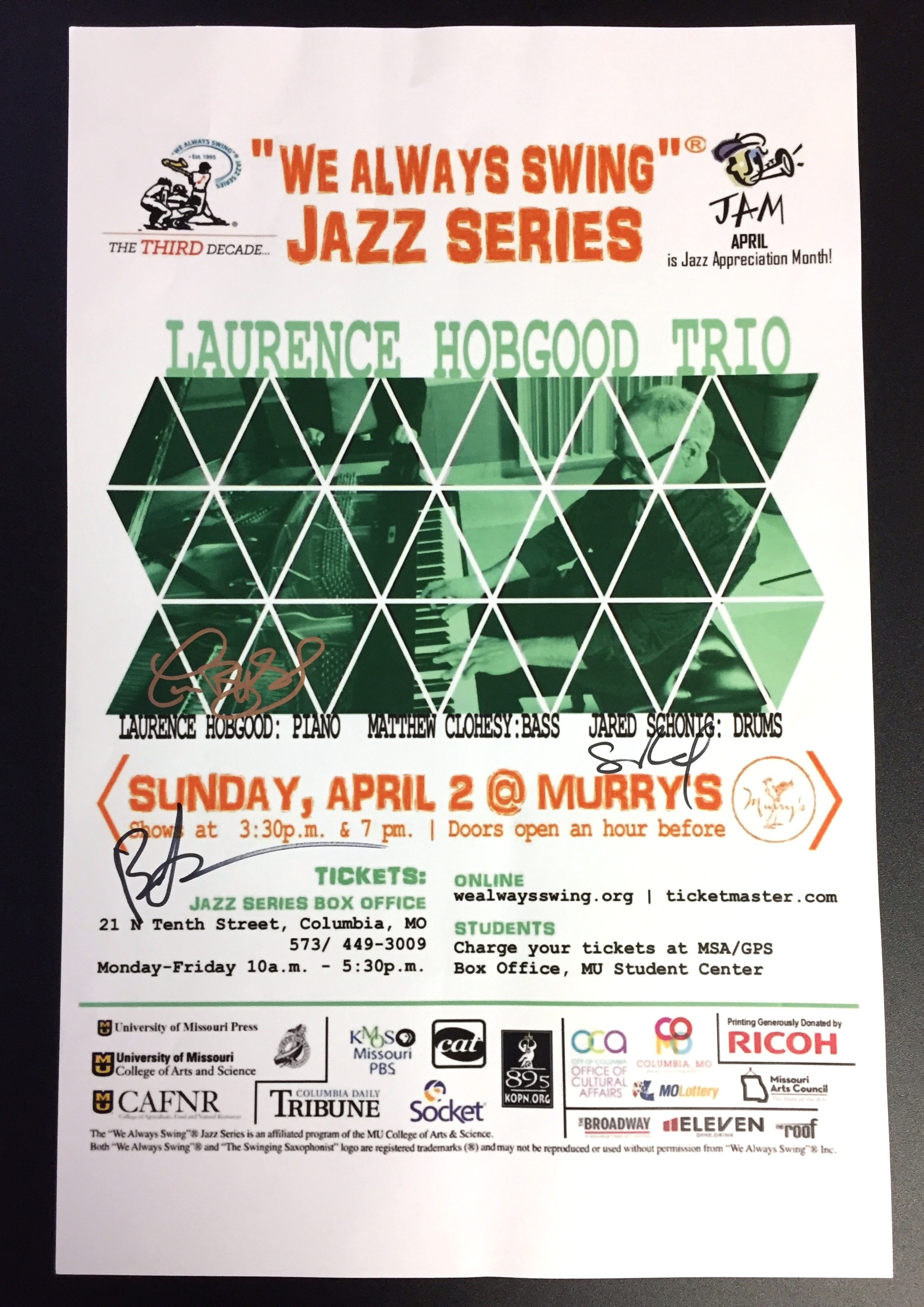 The "We Always Swing”® Jazz Series is a 501(c)(3) not-for-profit corporation administered by “We Always Swing,” Inc. The Jazz Series is supported by: concert revenue; federal, state and local grants and contracts; corporate sponsorships; underwriting and advertising-derived income; and by the generosity of individuals who make tax-deductible contributions. “We Always Swing”® and “The Swinging Saxophonist”™ logo are registered trademarks of “We Always Swing,”® Inc./National Pastimes Productions™ and may not be reproduced in print or digital format without prior consent.