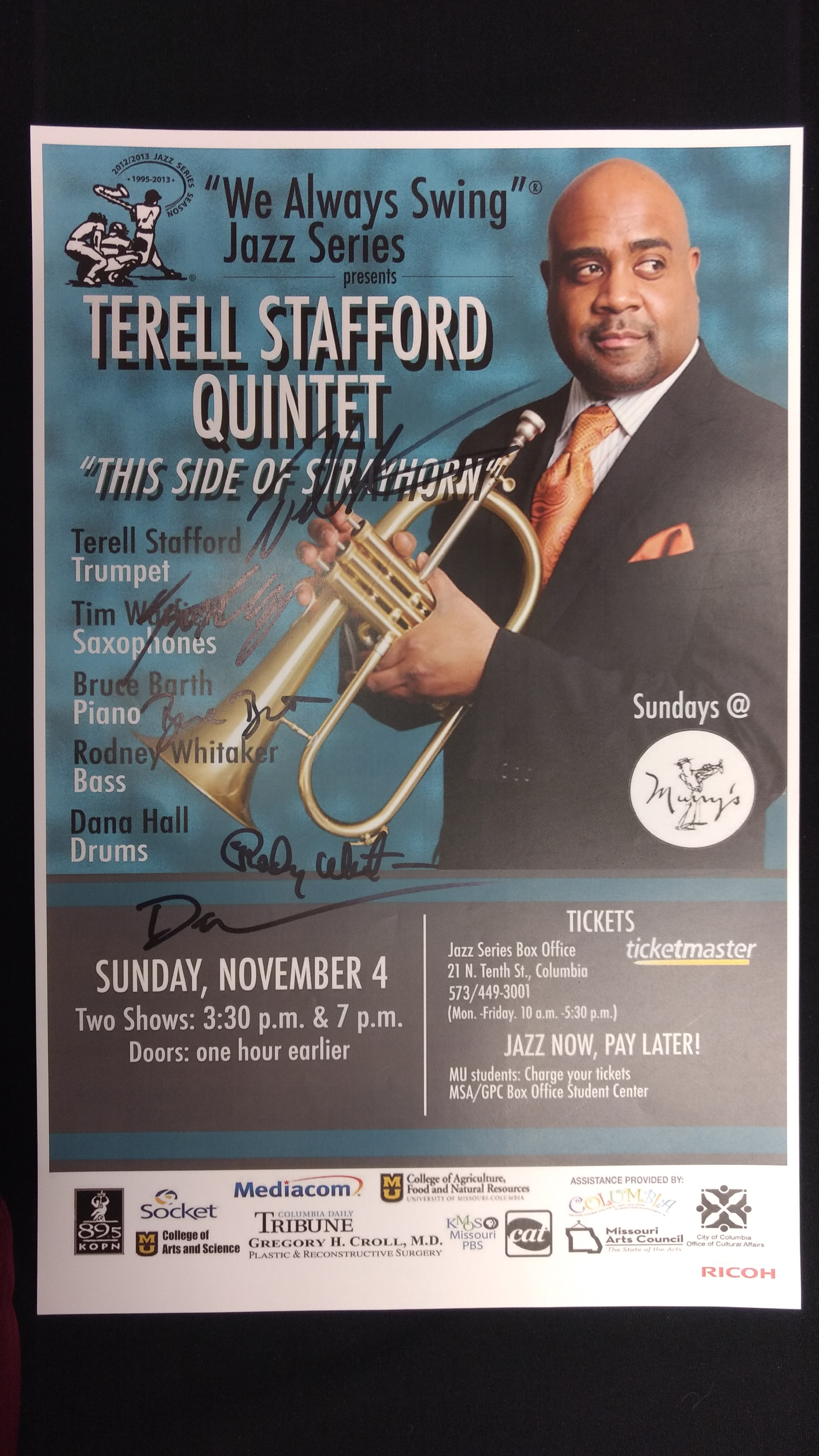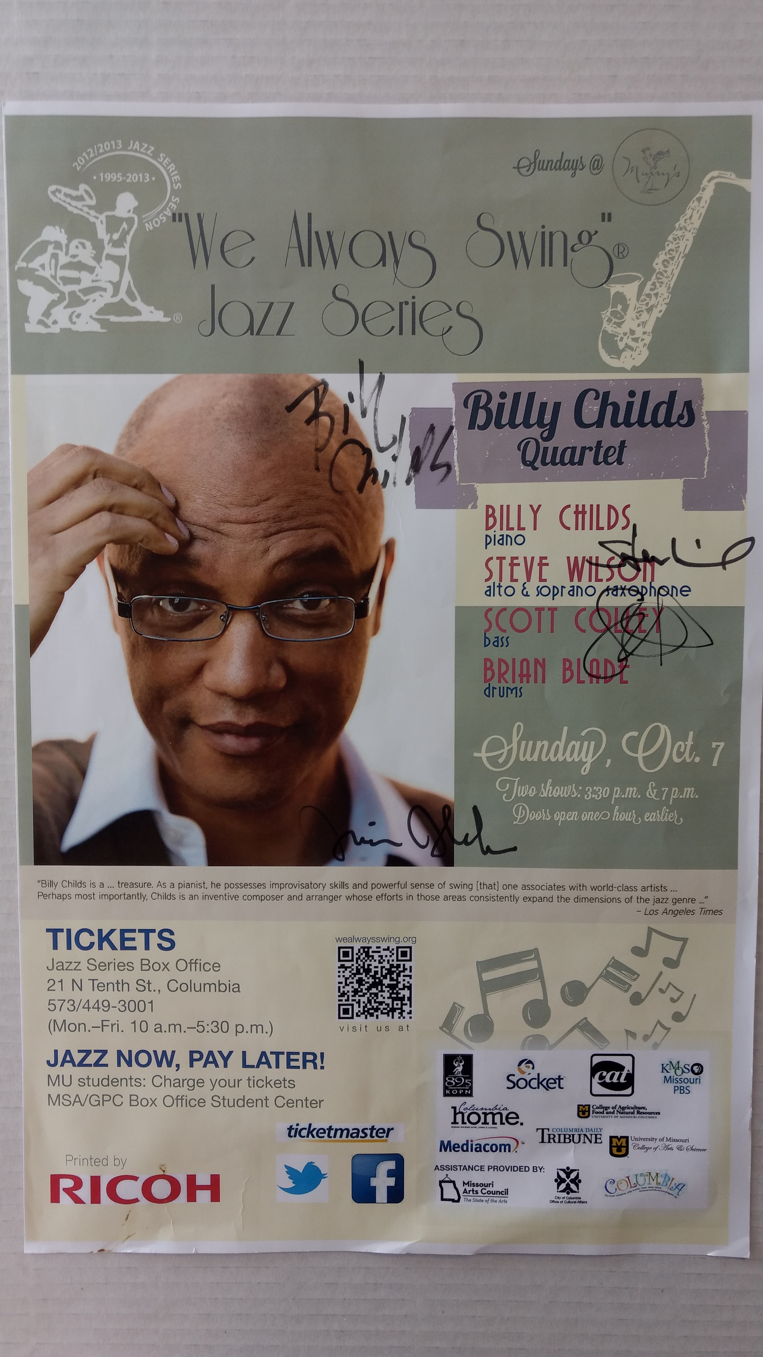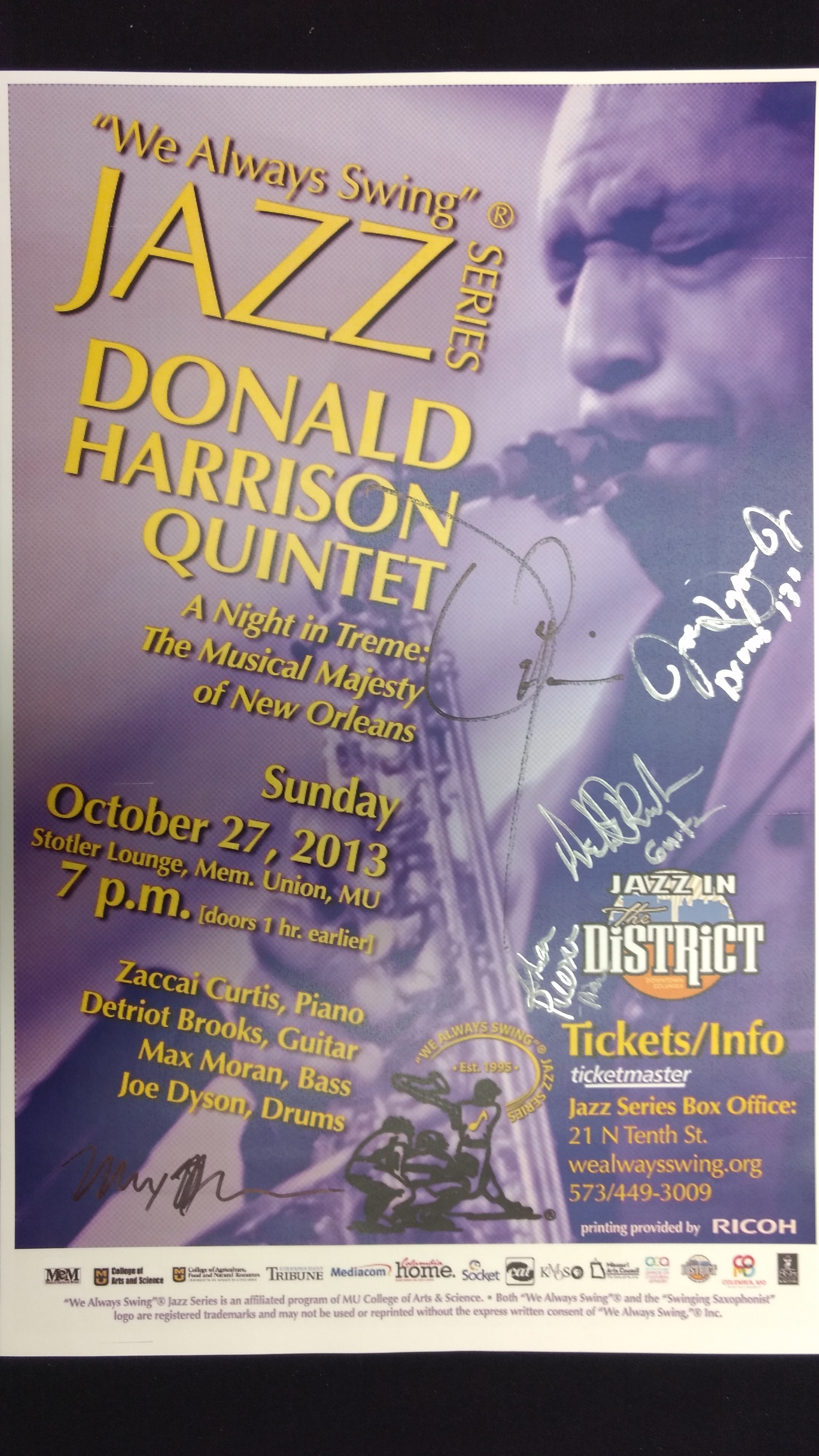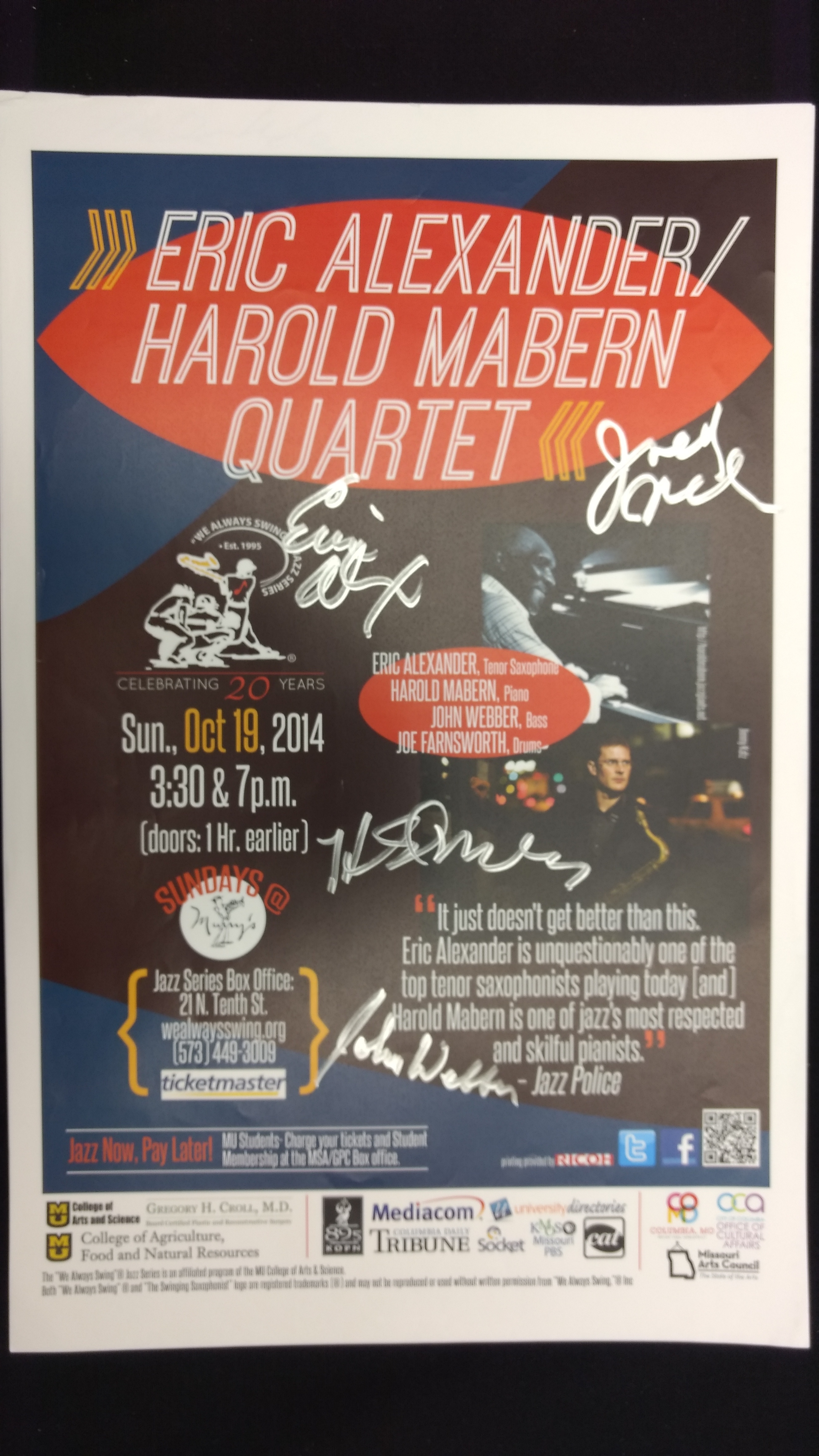 The "We Always Swing”® Jazz Series is a 501(c)(3) not-for-profit corporation administered by “We Always Swing,” Inc. The Jazz Series is supported by: concert revenue; federal, state and local grants and contracts; corporate sponsorships; underwriting and advertising-derived income; and by the generosity of individuals who make tax-deductible contributions. “We Always Swing”® and “The Swinging Saxophonist”™ logo are registered trademarks of “We Always Swing,”® Inc./National Pastimes Productions™ and may not be reproduced in print or digital format without prior consent.